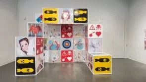 An Attraction    Installation with polyvinyl chloride pipe, inkjet prints on celluloid film, maple plywood coated in federal standard Occupational Safety and Health Administration (OSHA) enamel paint and polyurethane high gloss, silver grommets, zi